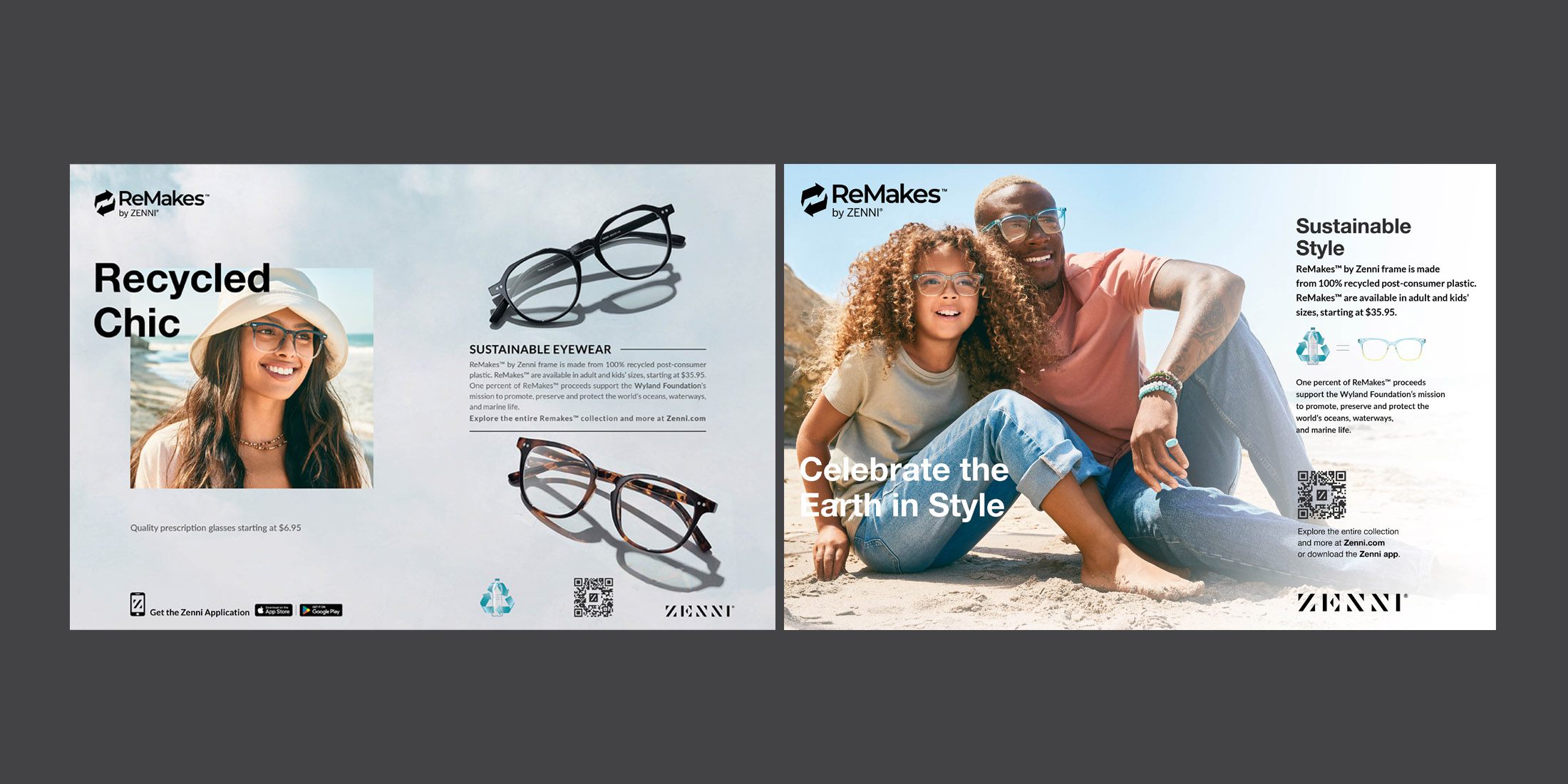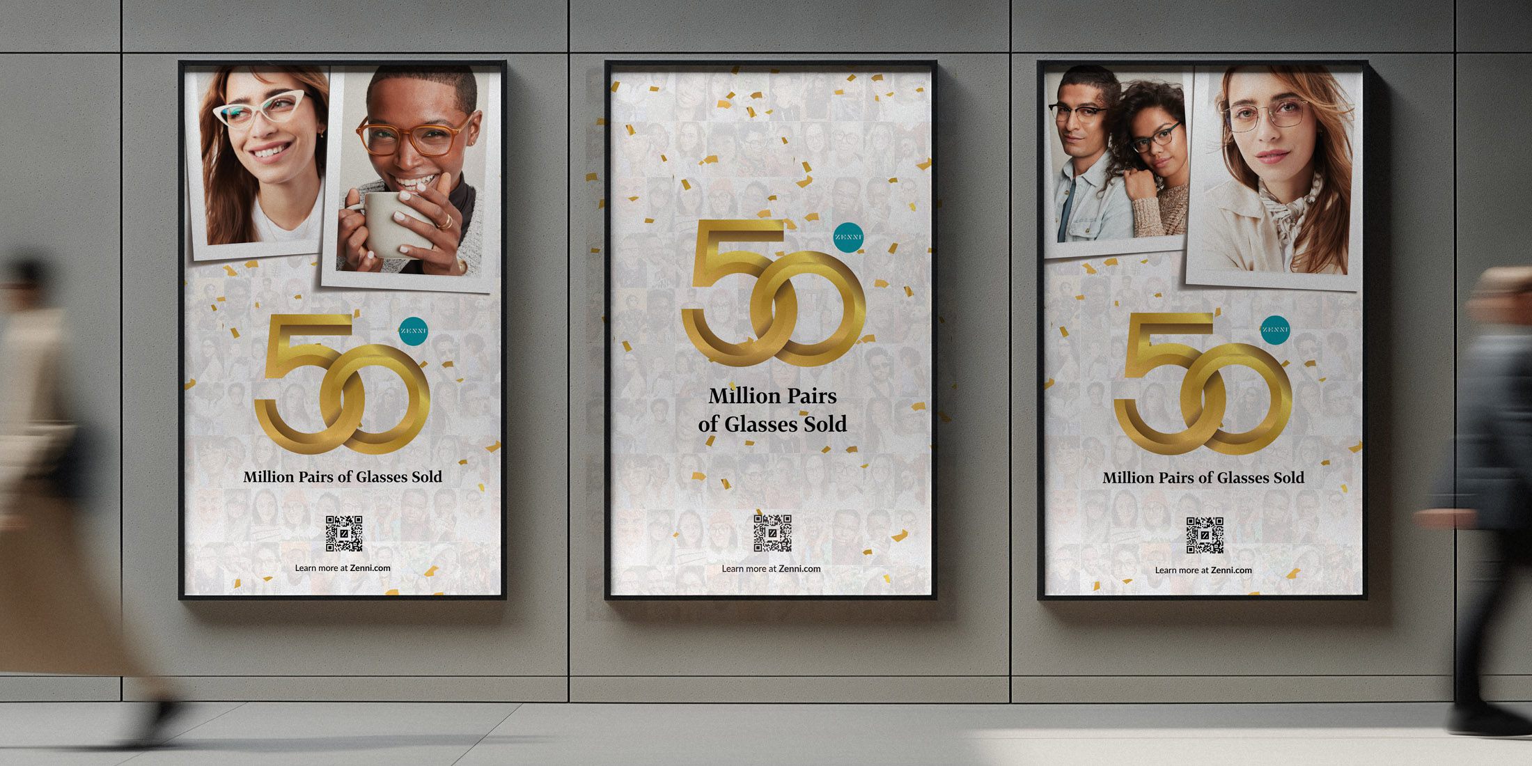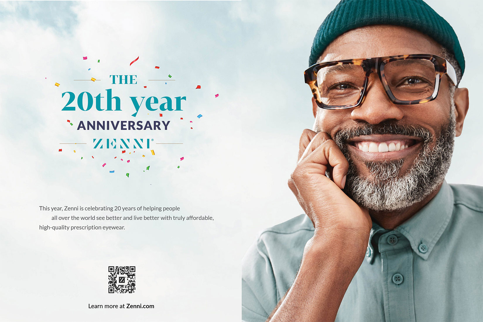 To mark Zenni’s 20th anniversary and their milestone of 50 million pairs sold, we partnered with the brand to develop a series of creative campaigns and redesigned print ads. The new look, which appeared in Hemispheres magazine, was minimalistic and sophisticated.